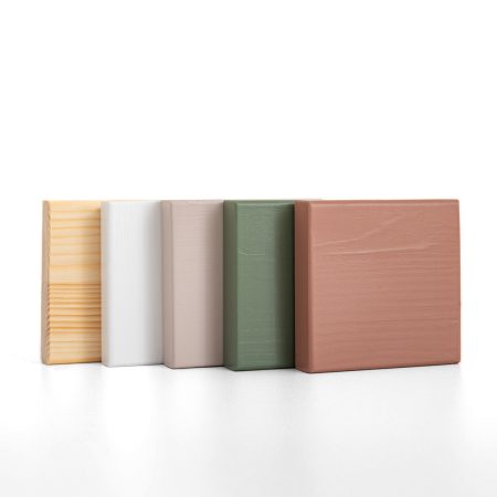 Først bliver træet behandlet med Tikkurila Akvi Isolator primer, som lukker porerne, beskytter mod misfarvning og fugt, og forbereder overfladen til slutbehandlingen.